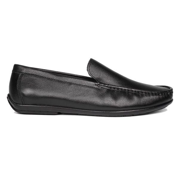 Review chi tiết giày lười nam màu đen.