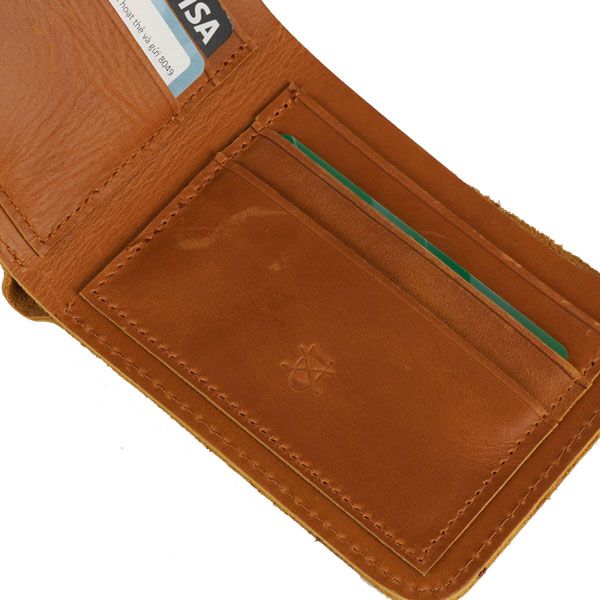 3: Chi tiết sản phẩm ví ngang nam da bò màu nâu vàng.